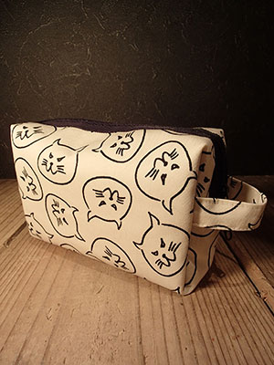 HIROSUKE画による猫の総柄ポーチ。小物入れ、ペンケース、メガネ入れなど様々な用途で使えるようになっており、女性の方には化粧ポーチとしてお使いいただけます。しかも内側には小物ポケット付きですので使い勝手も非常に便利です!